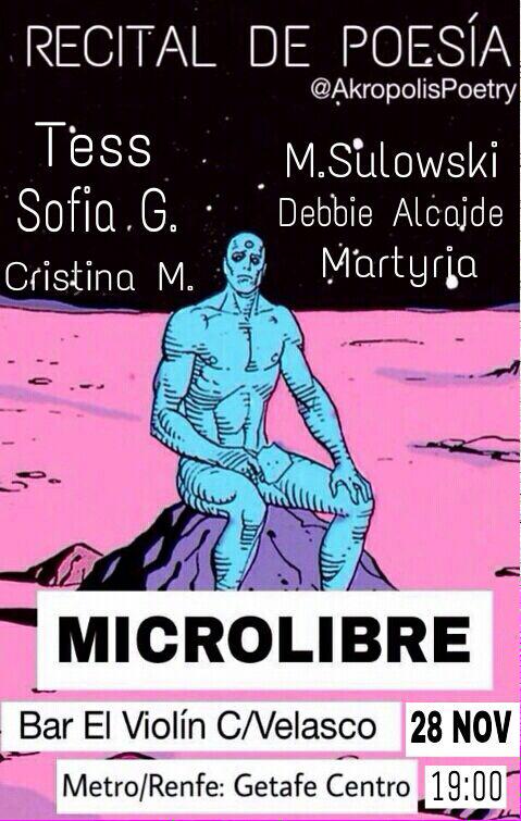 El próximo viernes 28, Akrópolis Poetry vuelve a las andadas y os propone una tarde llena de poesía. Con microlibre para poetas y cantautores además de 6 artistas invitados: Un cantautor y cinco poetisas.
