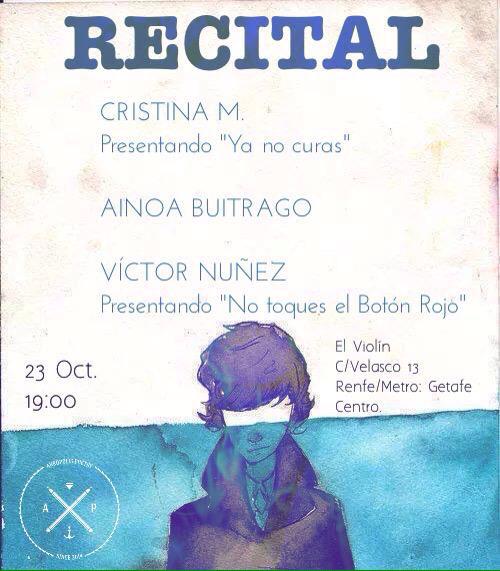 Nuestro recital toma lugar en el bar el Violín, un bar con una sala por la que han desfilado diversos cantautores y poetas, ahora es nuestro turno. El bar se ubica en la calle Velasco de Getafe. Madrid.